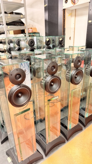 Il nous explique comment il conçoit ses haut-parleurs, comment il a lui-même imaginé les robots et outils de production, et surtout l’importance de chaque détail…
